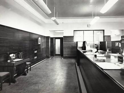 walls of the banking hall up to door height are faced with Australian